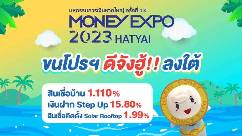 งานมหกรรมการเงินหาดใหญ่ ครั้งที่ 13 Money Expo 2023 Hatyai จัดโดยวารสาร “การเงินธนาคาร” วันที่ 7-9 กรกฎาคม 2566 เงินสะพัดในงาน 3 วัน กว่า 8,000 ล้านบาท แบงก์แข่งโปรโมชั่นดอกเบี้ยพิเศษ-ฟรีค่าธรรมเนียม ดันสินเชื่อบ้านติดอันดับ 1 กว่า 4,190 ล้านบาท