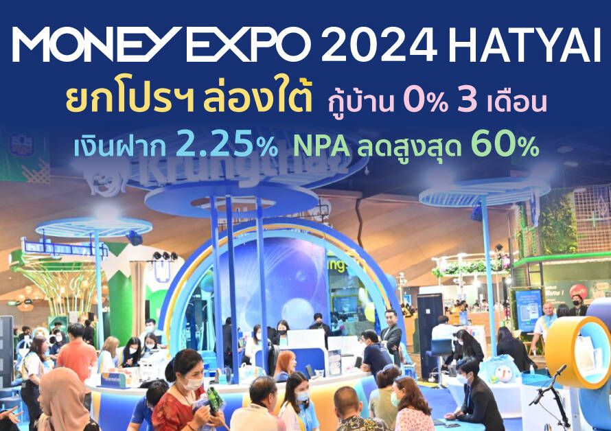 27 June 2024มันนี่ เอ็กซ์โป 2024 หาดใหญ่ ยกโปรฯ ล่องใต้ กู้บ้าน 0% 3 เดือน เงินฝาก 2.25% NPA ลดสูงสุด 60%