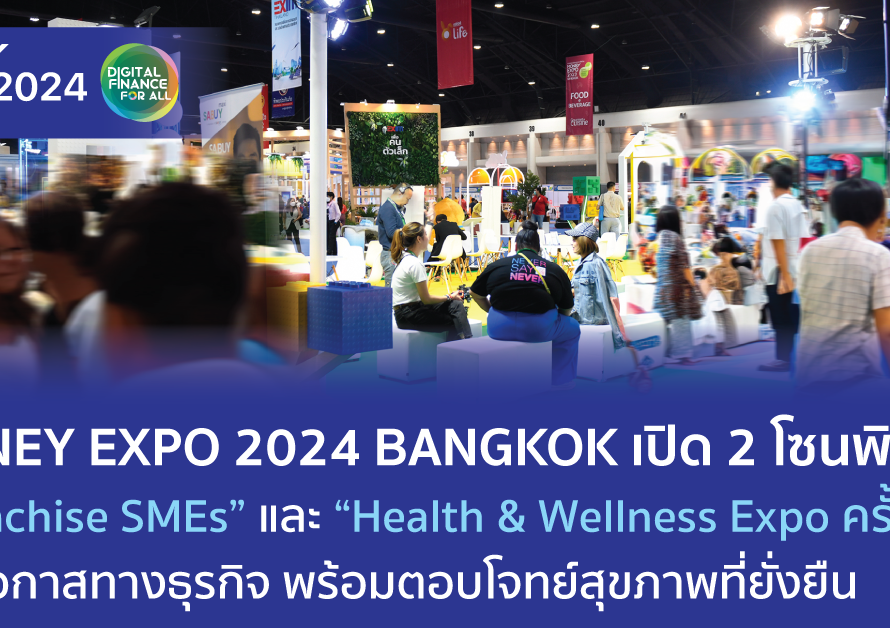 14 May 2024MONEY EXPO 2024 BANGKOK เปิด 2 โซนพิเศษ “Franchise SMEs” และ “Health & Wellness Expo ครั้งที่ 3” เพิ่มโอกาสทางธุรกิจ พร้อมตอบโจทย์สุขภาพที่ยั่งยืน