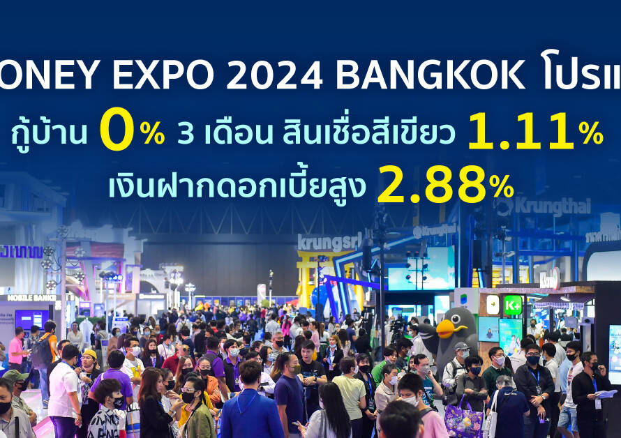 9 May 2024MONEY EXPO 2024 BANGKOK โปรแรงกู้บ้าน 0% 3 เดือน สินเชื่อสีเขียว 1.11% เงินฝากดอกเบี้ยสูง 2.88%
