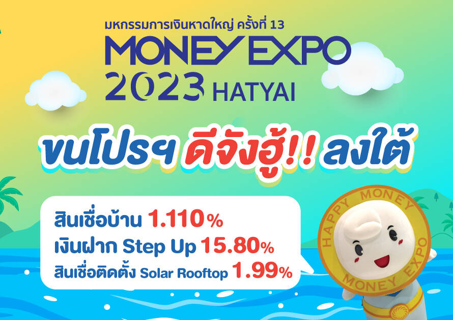 11 September 2023MONEY EXPO 2023 HATYAI ขนโปรฯ ดีจังฮู้!! ลงใต้ สินเชื่อบ้าน 1.110% เงินฝาก Step UP 15.80% สินเชื่อติดตั้ง Solar Rooftop 1.99%
