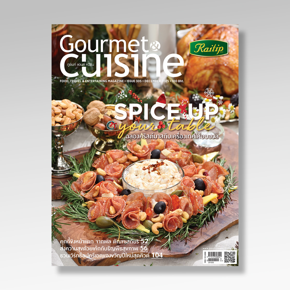 Gourmet & Cuisine ฉบับเดือนธันวาคม 2568 พบกับ Spice Up Your Wonderful Life ฉบับพิเศษส่งท้ายปี ร่วมเฉลิมฉลอง “วันแห่งความสุขด้วยเครื่องเทศ” ไปกับ แบรนด์ไร่ทิพย์ ชวนทุกท่านดื่มด่ำกับอาหารมื้อพิเศษที่อบอวลด้วยกลิ่นและรสแห่งความอบอุ่น พร้อมชุดเมนูเฉลิมฉลองสุดอลังการ ที่จะทำให้โต๊ะอาหารของคุณไม่ว่าจะเป็นมื้อกับครอบครัวหรือเพื่อนฝูงให้พิเศษมากกว่าเดิม ติดตามทั้งหมดได้ใน COVER STORY