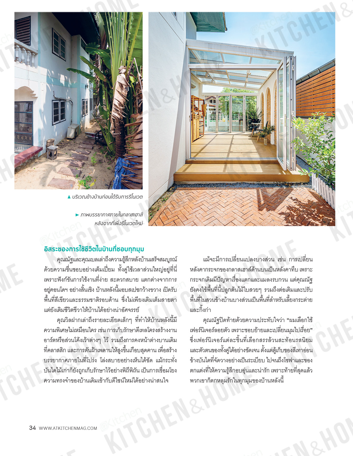 Kitchen & Home ฉบับเดือนสิงหาคม 2568 พาไปชมบ้านสองชั้นที่รีโนเวตจากบ้านเก่าให้กลายเป็นบ้านที่แต่งแต้มกลิ่นอายโฮมมีสไตล์อิงลิชคอตเทจ ตามด้วยบ้านจัดสรรที่ถูกแปลงโฉมให้เป็นทั้งที่พักกายพักใจและสตูดิโอทำงาน