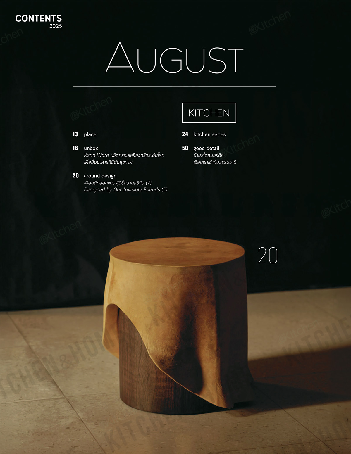 Kitchen & Home ฉบับเดือนสิงหาคม 2568 พาไปชมบ้านสองชั้นที่รีโนเวตจากบ้านเก่าให้กลายเป็นบ้านที่แต่งแต้มกลิ่นอายโฮมมีสไตล์อิงลิชคอตเทจ ตามด้วยบ้านจัดสรรที่ถูกแปลงโฉมให้เป็นทั้งที่พักกายพักใจและสตูดิโอทำงาน ตามด้วย Good Detail เอาใจใครที่ชื่นชอบบ้านสไตล์นอร์ดิกที่เรียบง่ายแต่มีสไตล์ เ ส่วนใครที่สนใจในเทรนด์การปลูกต้นโอลีฟต้องไม่พลาด สำหรับผู้ที่รักการท่องเที่ยว Kitchen & Home Rally ครั้งที่ 13 กลับมากับทริปสุดสนุกสำหรับคนรักครัว ปีนี้มาในคอนเซ็ปต์ “เที่ยวฟินอินกาญจน์ Pack Joy, Leave Stress” ชวนปลดปล่อยความเครียดไปกับเส้นทางท่องเที่ยวที่งดงาม กรุงเทพฯ – กาญจนบุรี ระหว่าง 18-19 ตุลาคม 2568